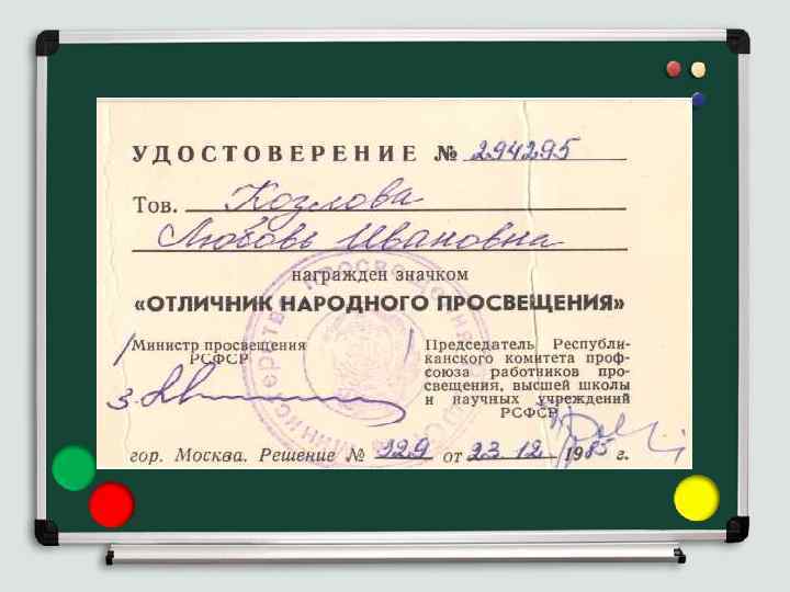 КОЗЛОВА ЛЮБОВЬ ИВАНОВНА За добросовестный труд награждена грамотой Министерства просвещения и комитетом профсоюза МАССР, грамотой Министерства просвещения и обкома профсоюза работников просвещения высшей школы и научных учреждений МАССР
