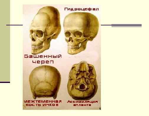 n На форму и размеры черепа влияют конституциональные и индивидуальные особенности. Различают долихоцефалическую, брахиоцефалическую и мезоцефалическую формы черепа. Но как бы не быа изменчива форма черепа, эти изменения не влияют на умственные способности. Попытки некоторых фальсификаторов науки на основании формы черепа говорить о «высших» и «низших» расах несостоятельны. n На форму черепа могут влиять и механические факторы. Искусственная деформация черепа достигается путем наложения на голову специальной жесткой повязки в детском возрасте ( «башенные» черепа у некоторых индейских племен на территории современной Мексики), или обычай обвязывать голову веревкой для ношения тяжестей, в результате чего на черепе появляется поперечная борозда (у женщин на островах Новой Гвинеи). n Индивидуальные различия формы и размеров черепа изучает наука – краниология, использующая краниометрические методы.