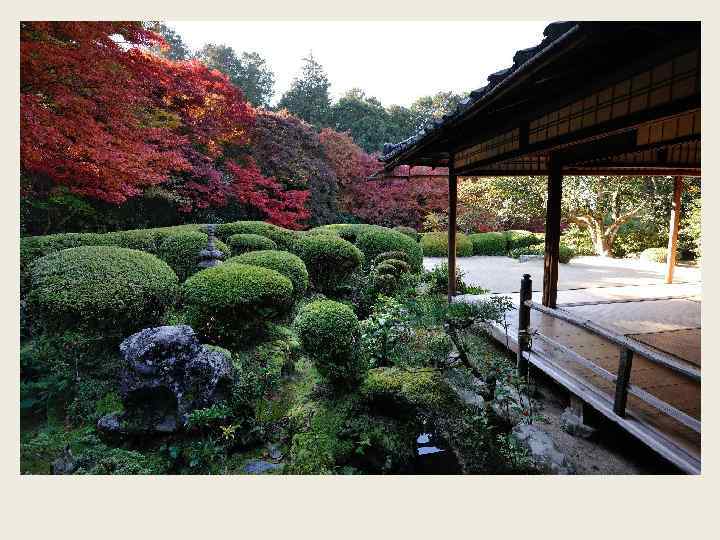 Своеобразным и ярким примером синтеза основных принципов японского искусства, уходящих корнями в древние верования японцев и отражающих философии и мировоззренческие идеалы синтоизма, буддизма и конфуцианства, может служить традиционное садовопарковое искусство. С древнейших времен для японцев было свойственно преклонение перед красотой родной природы, которую они считали божественным творением. Японцы поклонялись горным вершинам, живописным скалам и причудливо рассыпанным камням, могучим старинным деревьям, водоемам и водопадам.