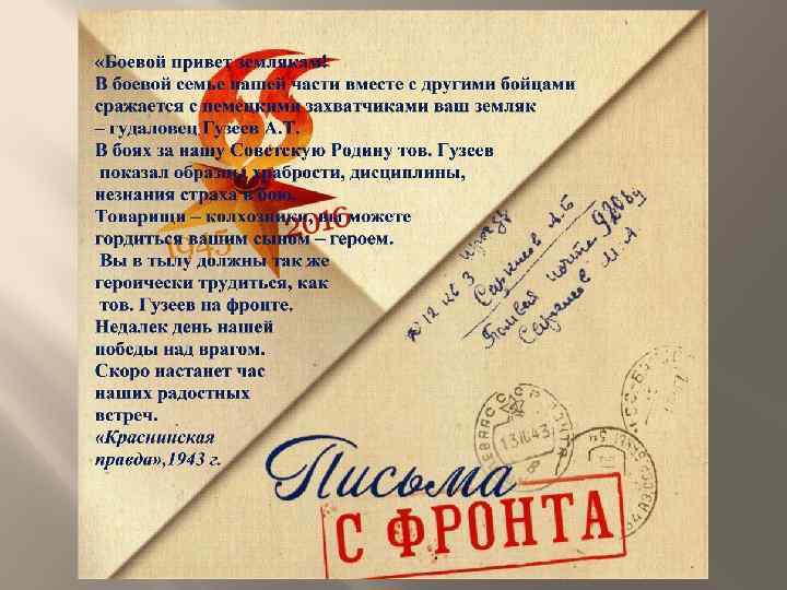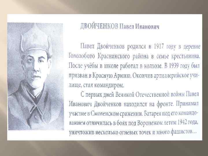 Материалы о фронтовиках были найдены в местном музее, в библиотеках, в подшивках районных газет. В течение многих лет учащиеся школ района, педагоги, краеведы и журналисты по крупицам собирали сведения о наших земляках, участвовавших в Великой Отечественной войне 1941 -1945 гг.