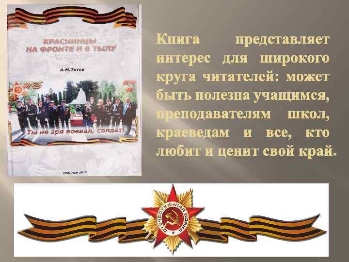 КРАСНИНЦЫ НА ФРОНТЕ И В ТЫЛУ А. М. ТИТОВ ПРЕЗЕНТАЦИЯ КНИГИ