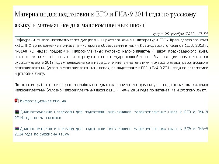 Методическая поддержка работы учителя Сайт ГБОУ Краснодарского края ККИДППО (http: //kkidppo. ru/) Раздел «Подготовка к аттестации учащихся»