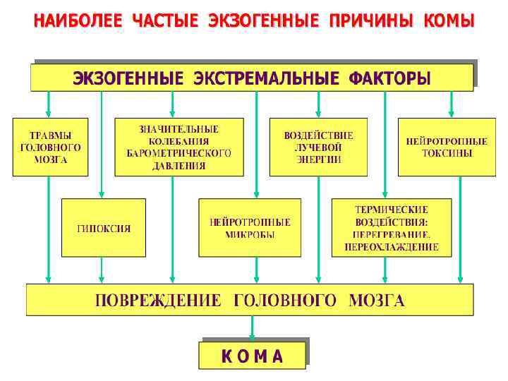 Ситуационные задачи 6. 60 -летний пациент М. доставлен в приемное отделение больницы в бессознательном состоянии. При осмотре: кожные покровы сухие, тургор кожи и тонус глазных яблок понижен, дыхание поверхностное; пульс - 96 уд. в мин, АД - 70/50 мм рт. ст; язык сухой; периодически наблюдаются судороги конечностей и мимической мускулатуры. Экспресс анализ крови: гипергликемия - 33 мм/л, гиперазотемия, гипернатриемия, р. Н - 7, 32. Из опроса родственницы, сопровождавшей пациента, выяснилось, что он болен сахарным диабетом, в связи с чем принимал небольшие дозы пероральных сахаропонижающих средств. Вопросы: 1. Как называется состояние, в котором пациент доставлен в больницу? Ответ обоснуйте 2. Что послужило причиной возникновения этого состояния? Назовите и охарактеризуйте основные звенья его патогенеза. 3. Почему при развитии подобных патологических состояний утрачивается сознание? 4. Какие срочные лечебные мероприятия необходимы для выведения из таких состояний?