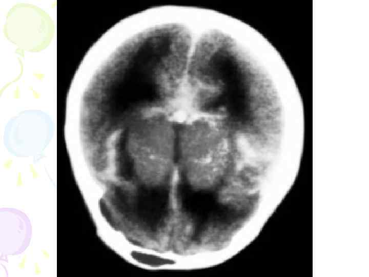 Клиника: • Менингеальный синдром • Гипертензионный • В соматическом статусе- желтуха, значительная потеря массы тела. • В ликворе присутствие крови. • В неврологическом статусе: психомоторное возбуждение, снижение сухожильных рефлексов, гипотония мышц.