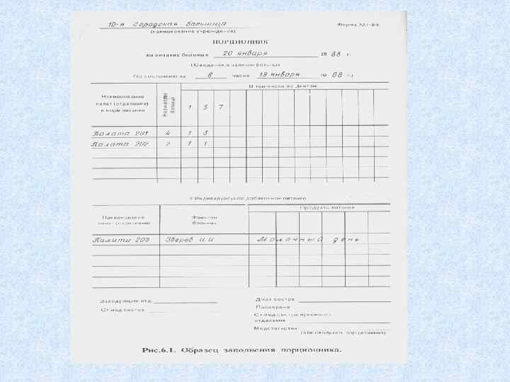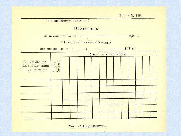 Необходимая диета и длительность ее применения определяются врачом в зависимости от заболевания, состояния больного и переносимости им назначенной диеты. Номер диеты врач записывает в медицинскую карту в листе назначений. Палатная медицинская сестра, проверяя лист назначений, ежедневно составляет Порционник должен содержать сведения о количестве различных диетических столов и видах разгрузочных и индивидуальных диет. Сведения о больных, выписывающихся из отделения, в порционник не включаются. На больных, поступивших в различные лечебные отделения больницы вечером и ночью, порционник составляет дежурная медицинская сестра лечебного отделения. Сведения палатных медицинских сестер о числе диет суммирует старшая медицинская сестра отделения, подписывает заведующий отделением, затем они передаются на пищеблок. Составление меню, контроль за качеством продуктов и их закладкой осуществляет врач-диетолог (в небольших больничных учреждениях- диетсестра).