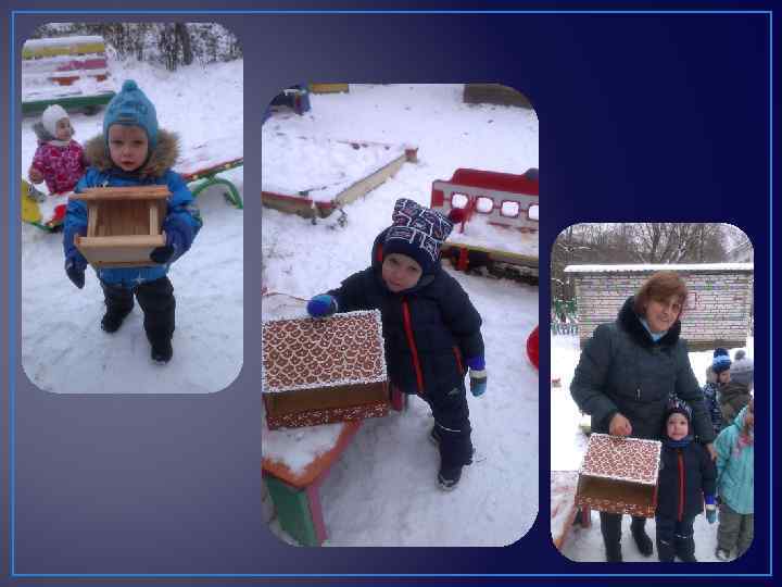 Работа с родителями: Макеты лесных зверей. Макет зайки в разных шубках. Мини-книжки о диких животных. Изготовление масок для игр. Оформление папки-передвижки «Дикие животные наших лесов» . • Кормушки для птиц. • • •
