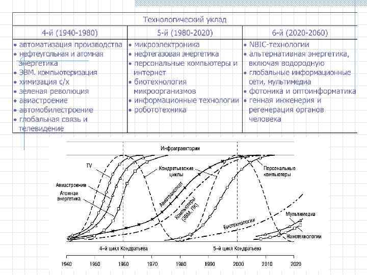 Современная организация и инновации 1. Предмет курса и его задачи. 2. Типы модернизации. 3. История технологических модернизаций в России (Петровская, Витте, Сталинская). Участие государства в модернизационном процессе. Предпосылки 4 -й технологической модернизации России, пути ее осуществления. 4. Длинные волны Н. Д. Кондратьева. Роль инноваций в циклическом развитии капитализма. 5. Понятие и признаки инновации. Инновации, как основа устойчивого конкурентного преимущества в современном глобальном конкурентном окружении. Особенности инноваций, трансфер знаний. 6. Степень инновационности продукта и технологические пределы инноваций. Детерминанты инновационного развития. Развитие конкурентоспособности на основе использования инноваций.