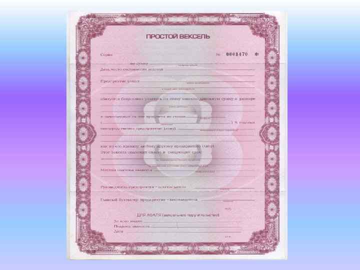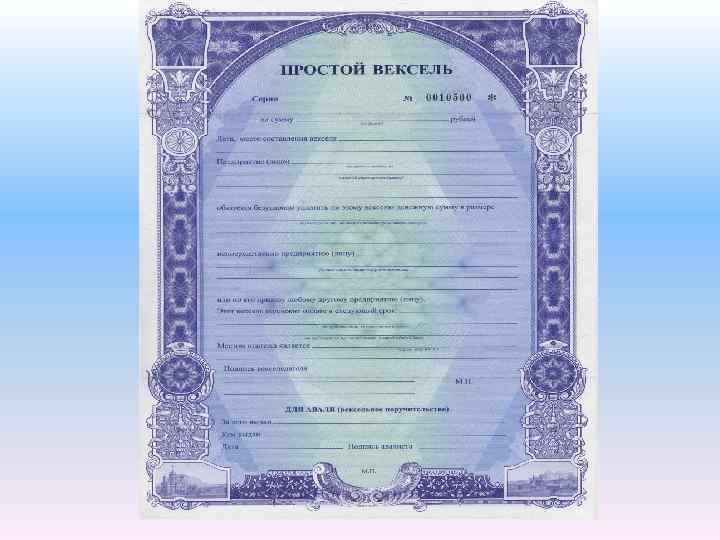 Вексель – ценная бумага, подтверждающая безусловное денежное обязательство должника уплатить в установленный срок указанную сумму денег владельцу векселя.