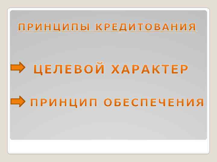 Принцип целевого использования (целевой характер) кредита распространяется на большинство видов кредитных операций и означает, что средства должны использоваться строго на те цели, на которые были выданы. Обеспеченность кредита выражает необходимость обеспечения защиты имущественных интересов кредитора при возможном нарушении заемщиком принятых на себя обязательств.