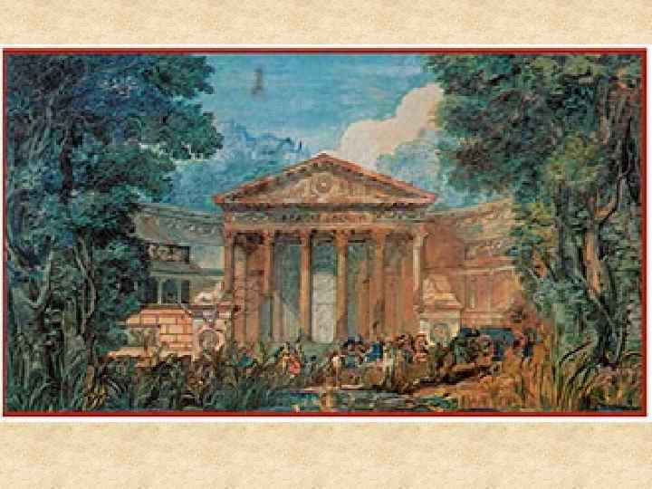 Декорации и костюмы В первом действии оперы «Беглый солдат» , поставленной в 1781 г. на сцене Кусковского театра, декорация представляла собой поле, за которым была видна гора и деревня; во втором — тюремную камеру, а в третьем действии сцена представляла собой большую площадь, через которую проходили полки. Летом того же года на сцене «Воздушного театра» была представлена «пастушья опера» «Тщетная ревность, или Перевозчик кусковский» . Декорации изображали тот же пейзаж, который зрители могли видеть вокруг себя, — луг, берег пруда, рощу, деревню за деревьями, а на другом берегу пруда — село Кусково. Николая Петровича Шереметева привлекали оперы и комедии со сказочнофантастическим и мифологическим сюжетами. В опере «Инфанта Заморы» действие происходило то в ночном лесу, то в таинственном замке, а на сцене появлялись призраки, духи и волшебники. Действие комической оперы «Прекрасная Арсена» начиналось в заоблачном царстве волшебницы Алины, где по сказочному саду гуляли феи, нимфы и ожившие мраморные статуи. Затем действие переносилось в мрачную пустыню, окруженную дикими скалами и лесом, а завершалось в волшебном дворце.