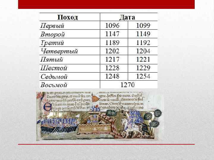 Крестовые походы – военно-религиозные предприятия западноевропейских рыцарей в страны Восточного Средиземноморья. Хронологические рамки: 1096 -1270