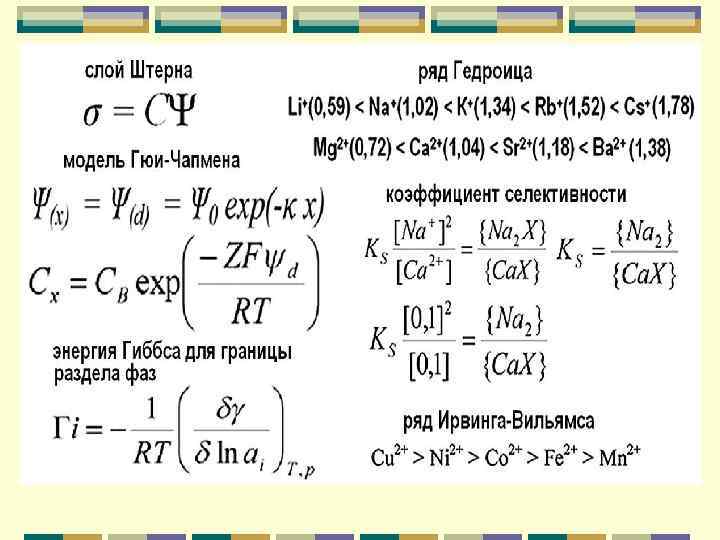 катиона с твердой фазой возрастает с увеличением валентности катиона, и снижаться с увеличением ионного радиуса, при равной валентности, т. е. зависит от потенциала Гольдшмидта. Это значит, что на одном и том же типе сорбционных центров одни катионы по сравнению с другими должны сильнее поглощаться, и удерживаться с большей энергией связи. Для одновалентных и двухвалентных катионов ряды Гедройца по увеличению радиуса иона и росту способности к преимущественному поглощению или замещению других катионов имеют вид Li+(0, 59) < Nа+(1, 02) < К+(1, 34) < Rb+(1, 52) < Сs+ (1, 67), и