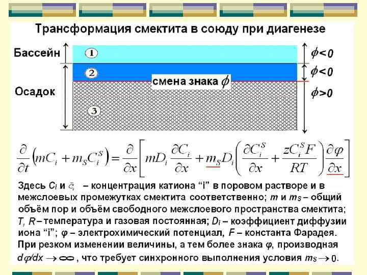 Расклинивающие эффекты от внедрения сеток из Н 2 О вместо К+ в межслоевые промежутки вторичной слюды приводят в процессе её обратной трансформации к появлению огромных напряжений, которое в аргиллитах или глинах может разрушать арматуру нагнетательных скважин. Показано, что нормальное к оси скважины давление KIа может быть оценено как : где а- радиус скважины, b- глубина зоны проникновения, С – концентрация опреснённого раствора. Оценочные расчёты дают величину KIa 175 МПа м 1/2, что больше чем у высоко легированной
