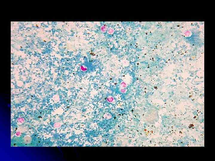 Подтверждение диагноза l l l Ведущим методом подтверждения диагноза этой инвазии следует считать микроскопическое выявление возбудителя. Микроскопическая диагностика криптоспоридиоза осуществляется путем выявления ооцист в в фекалиях на мазках, окрашенных разными красителями (карболовым фуксином по Цилю-Нильсену, аурамином, генциановым фиолетовым и другими) с последующим изучением препаратов с помощью иммерсионной системы микроскопа. При использовании в качестве красителя аурамина для изучения мазков применяют люминесцентный микроскоп. К числу недостатков микроскопической диагностики следует отнести значительную затрату времени и их невысокую чувствительность и специфичность. Более эффективными в плане диагностики криптоспоридиоза считаются серологические методы выявления криптоспоридий и применение полимеразной цепной реакции (ПЦР). И если микроскопические методы дают 83. 7 % чувствительности и 98. 9 % специфичности, то ПЦР демонстрирует 100%-ную надежность в обоих случаях.