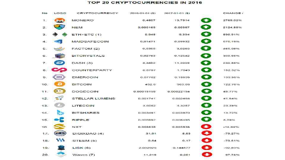 Биткоин обогнал золото впервые в истории в 2017 году • В 2014 году биткойн оказался самой худшей валютой (-56%) • В 2015 лучшей с ростом в 36% • В 2016 он вырос на 126%