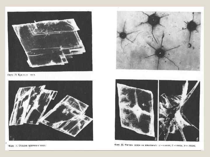 ИЗУЧЕНИЕ СВОЙСТВ КРИСТАЛЛОВ И АМОРФНЫХ ТЕЛ. Оборудование: фотографии кристаллических и аморфных тел. Цель: сравнить результат ударного воздействия на пластины слюды, гипса, стекла. Группа 4