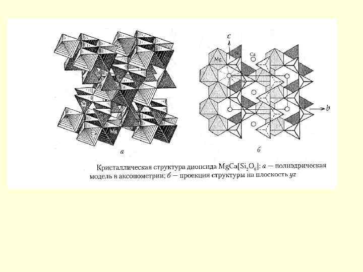 Проекция на плоскость хy кристаллической структуры оливина(Mg, Fe)2[Si. O 4] Выделены координационные полиэдры – октаэдры – вокруг атомов Mg и Fe (М 1 и М 2) и тетраэдры вокруг атомов Si