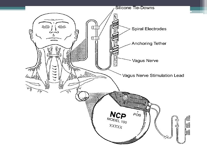 Стимуляция блуждающего нерва • Один из самых широко используемых в мире немедикаментозных методов и самый первый из официально разрешенных к применению. • Первая имплантация стимулятора блуждающего нерва была проведена пациенту в 1988 году. • Затем последовали двойные слепые рандомизированные исследования, на основании полученных данных стимуляция блуждающего нерва был зарегистрирована FDA (Food and Drug Administration) в США в 1997 году у взрослых и подростков старше 12 лет с резистентной эпилепсией. • В настоящее время насчитывается более 70 000 пациентов с имплантированным стимулятором блуждающего нерва