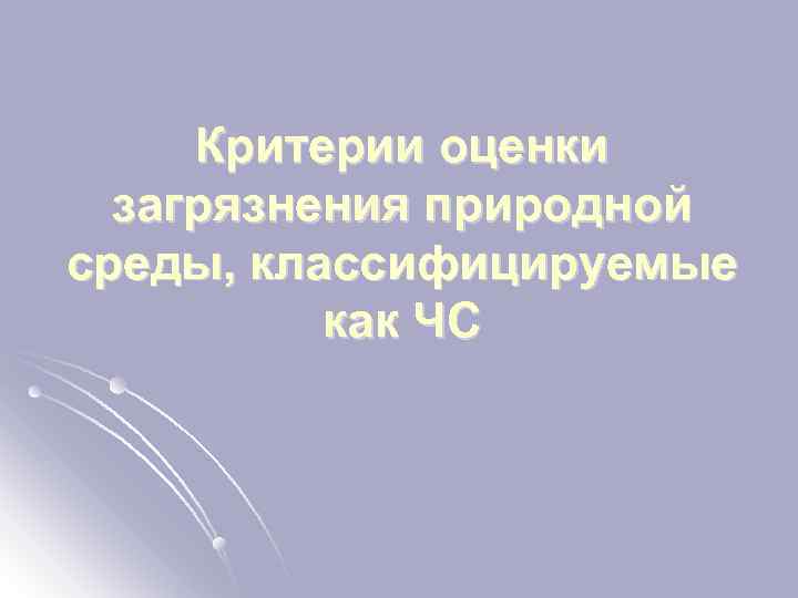 Для почв и земель: l l содержание пестицидов в концентрациях 50 и более ПДК по санитарно-токсикологическим критериям; содержание загрязняющих веществ технологического происхождения в концентрациях 50 и более ПДК; в случае, если ПДК загрязняющего вещества не установлена, то превышение фона более чем в 100 раз; наличие несанкционированных свалок токсичных отходов;