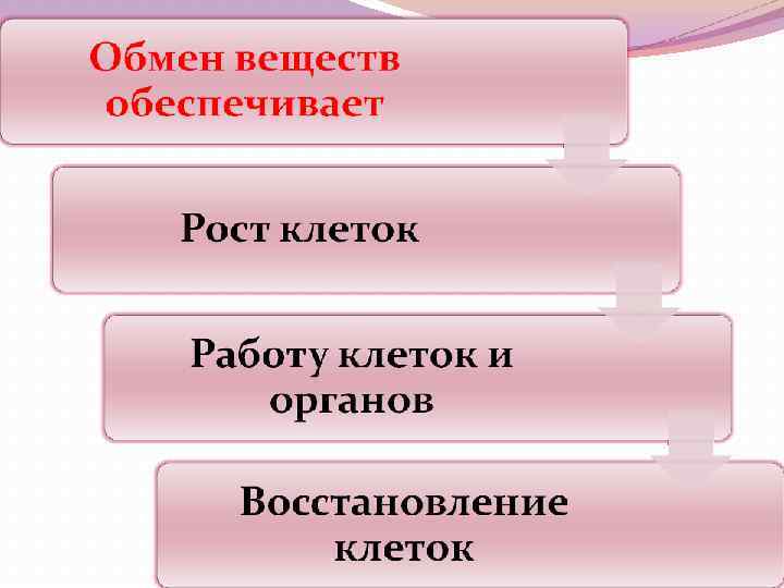 Углекислый газ Кислород Вода АК, глюкоза, глицерин и жирные кислоты 1)Синтез органических веществ; 2)Распад органических веществ с выделением энергии Вода Продукты распада Мочевина и мочевая кислота Энергия
