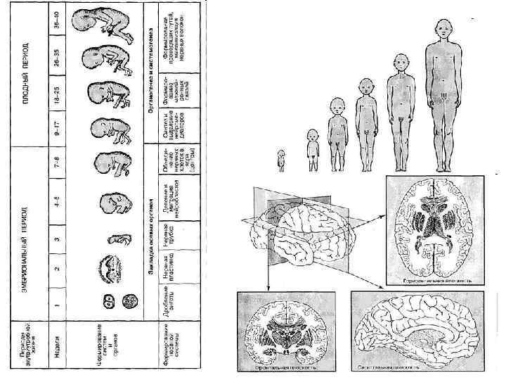 Критические периоды онтогенеза В процессе индивидуального развития имеются критические периоды, когда повышена чувствительность развивающегося организма к воздействию повреждающих факторов внешней и внутренней среды. Выделяют несколько критических периодов развития. Такими наиболее опасными периодами являются: 1) время развития половых клеток овогенез и сперматогенез; 2) момент слияния половых клеток оплодотворение; 3) имплантация зародыша (4 8 е сутки эмбриогенеза); 4) формирование зачатков осевых органов (головного и спинного мозга, позвоночного столба, первичной кишки) и формирование плаценты (3 8 я неделя развития); 5) стадия усиленного роста головного мозга (15 20 я неделя); 6) формирование функциональных систем организма и дифференцирование мочеполового аппарата (20 24 я неделя пренатального периода); 7) момент рождения ребенка и период новорожденности переход к внеутробной жизни; метаболическая и функциональная адаптация; 8) период раннего и первого детства (2 года 7 лет), когда заканчивается формирование взаимосвязей между органами, системами и аппаратами органов; 9) подростковый возраст (период полового созревания у мальчиков с 13 до 16 лет, у девочек с 12 до 15 лет). Одновременно с быстрым ростом органов половой системы активизируется эмоциональная деятельность.