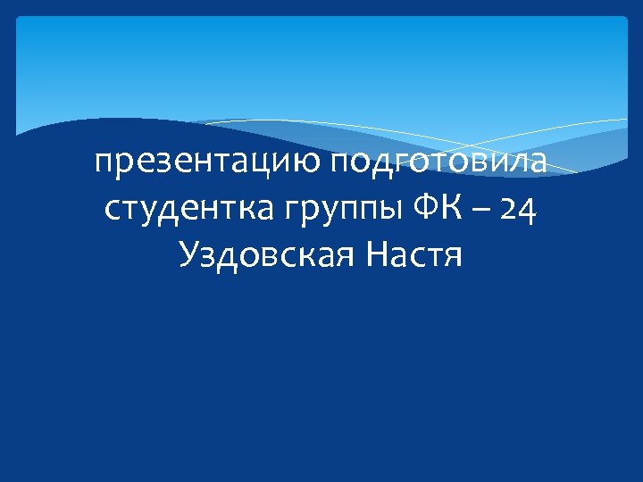 презентацию подготовила студентка группы ФК – 24 Уздовская Настя