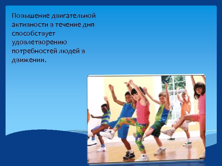 Повышение двигательной активности в течение дня способствует удовлетворению потребностей людей в движении.