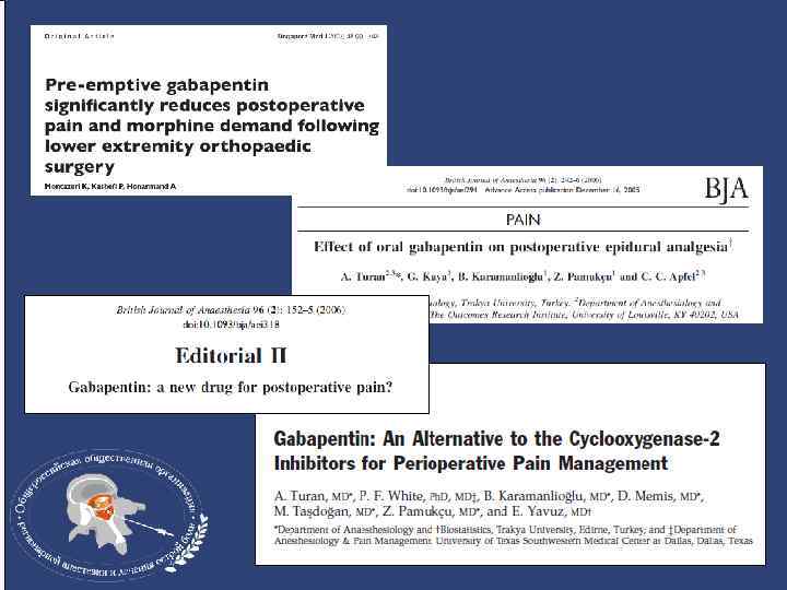 Габапентин: схемы назначения • От 600 до 1200 мг per os за 1, 5 -2 часа до операции • Длительность назначения – от 1 -х до 30 суток (чаще 8 -10) • Суточная доза от 300 мг до 2400 мг (чаще 900 -1200 мг) в 3 -4 приема