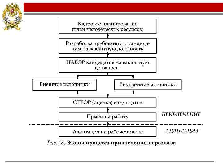 Литература: Наем на работу — это ряд действий, направленных на привлечение кандидатов, обладающих качествами, необходимыми для достижения целей, поставленных организацией. 1. Анализ потребности в кадрах (настоящей и перспективной 2. Формулирование требований к персоналу 3. Определение источников поступление кандидатов (внешние или внутренние) 4. Выбор методик оценки и отбора кадров