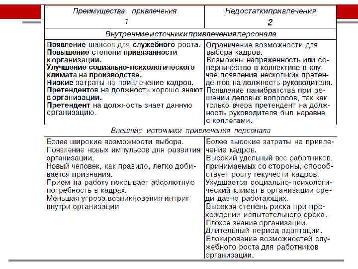 Внутренние источники привлечения персонала