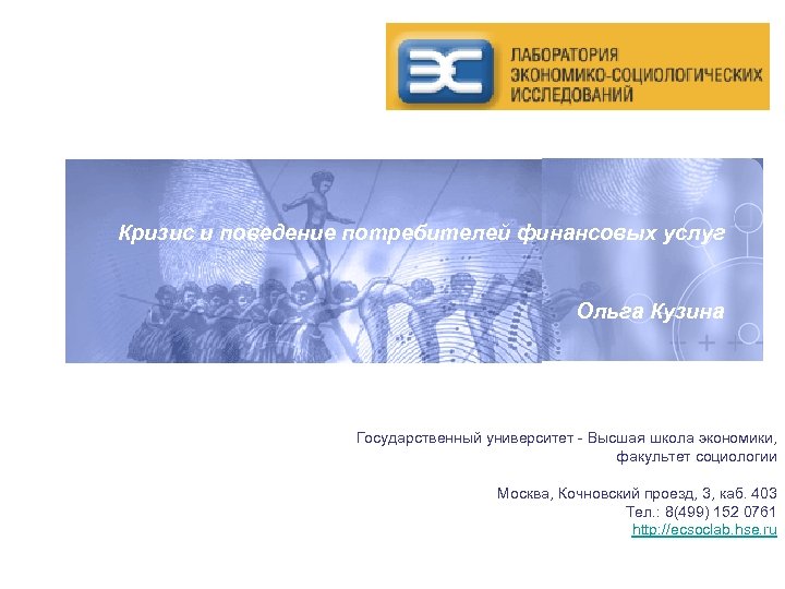 Кризис и поведение потребителей финансовых услуг Ольга Кузина Государственный университет - Высшая школа экономики, факультет социологии Москва, Кочновский проезд, 3, каб. 403 Тел. : 8(499) 152 0761 http: //ecsoclab. hse. ru