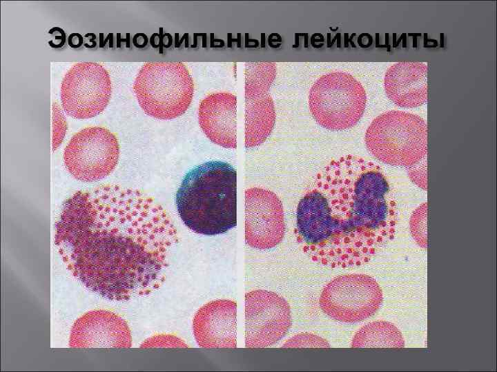 § § § Эозинофилы способны к фагоцитозу, хоть и в меньшей степени, чем нейтрофилы. Основной их функцией является уничтожение паразитов и участие в аллергических реакциях. Эозинофилы перемещаются в область с высокой концентрацией гистамина и оказывают антигистаминное действие: тормозят освобождение гистамина из базофилов, а также адсорбируют его, фагоцитируют и инактивируют.