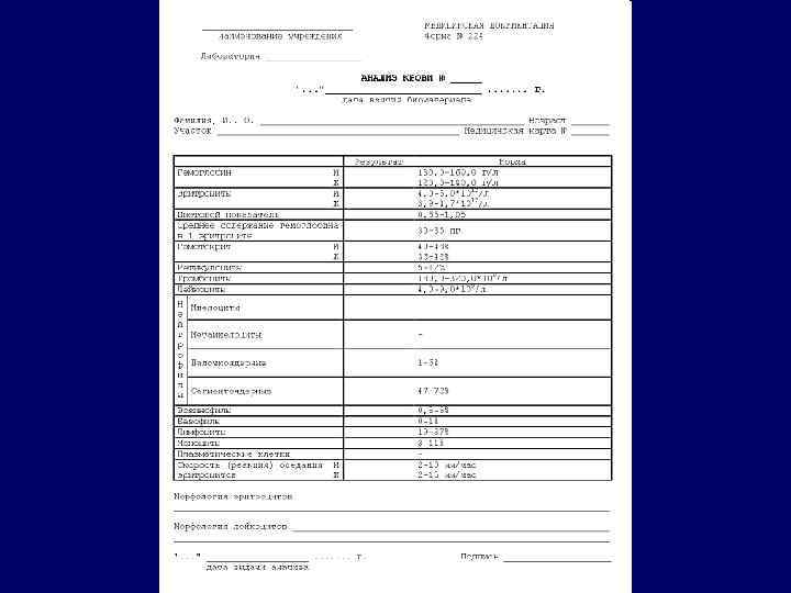 В 1 мм 3 крови здорового человека содержится 4, 5 - 5, 0 млн. эритроцитов Содержание гемоглобина в крови человека 120 - 160 г/л (130 -160 г/л у мужчин и 120 -140 г/л у женщин) Степень насыщенности эритроцита гемоглобином (средняя концентрация Hb в эритроците) – 32 -33 % у мужчин и 30 -31 % у женщин Кислородсвязывающая способность гемоглобина – 1. 34 мл О 2 на 1 г Hb