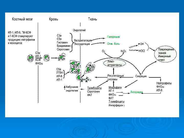 Признаки дегенерации Ø Ø Ø Ø 1) токсогенная зернистость в цитоплазме нейтрофилов, образование которой связано с коагуляцией белков под действием инфекционного или токсического агента; 2) вакуолизация цитоплазмы и (реже) ядра - признак жировой дегенерации клетки, наиболее характерен для абсцессов, тяжелых форм сепсиса, лучевой болезни; 3) анизоцитоз лейкоцитов - появление микро- и гигантских форм клеток; 4) гипохроматоз - потеря ядром способности нормально окрашиваться, при этом оно может сохранять четкие контуры (хроматинолиз) либо не имеет их (кариолиз); 5) фрагментация - отшнуровка от ядра отдельных его фрагментов; 6) пикноз (уплотнение структуры хроматина) и рексис ядра - распад его на отдельные, не связанные между собой пикнотичные части; 7) гиперсегментация ядер нейтрофилов (при анемии Аддисона-Бирмера, лучевой болезни) и др.