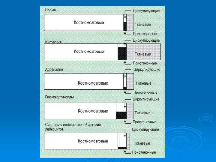 Механизмы развития лейкоцитозов Ø Усиление лейкопоэза Ø Перераспределение в сосудистом русле Ø Гемоконцентрация Ø Лейкозы