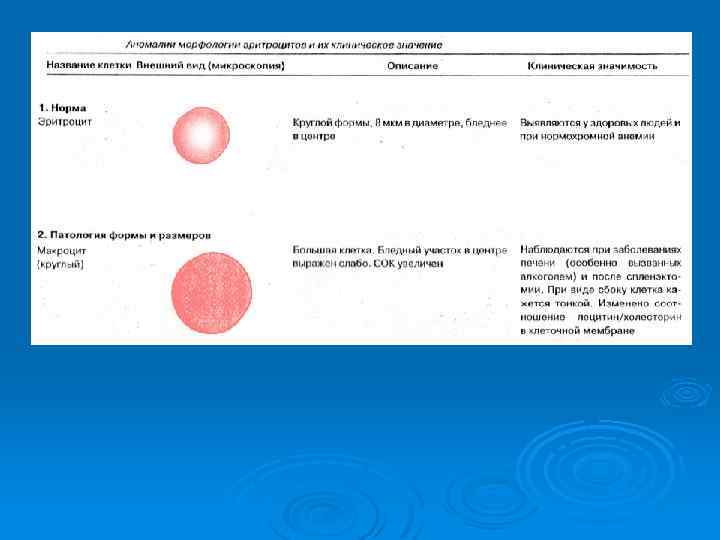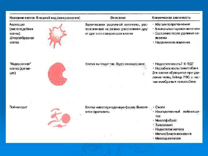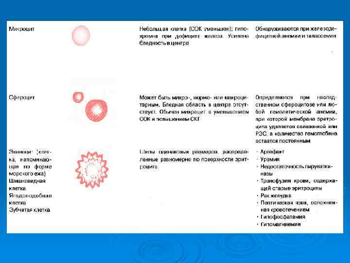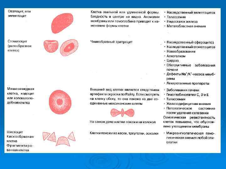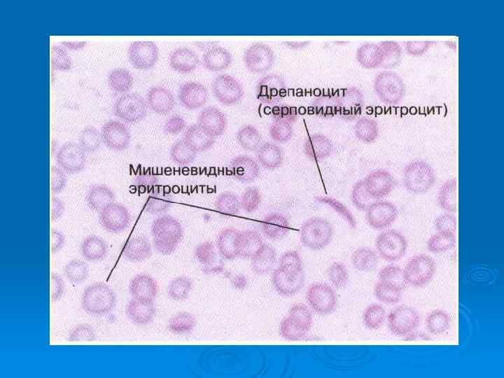 Картина крови при талассемии Для талассемии характерно появ-ление в крови так называемых «мишеневидных» эритроцитов.