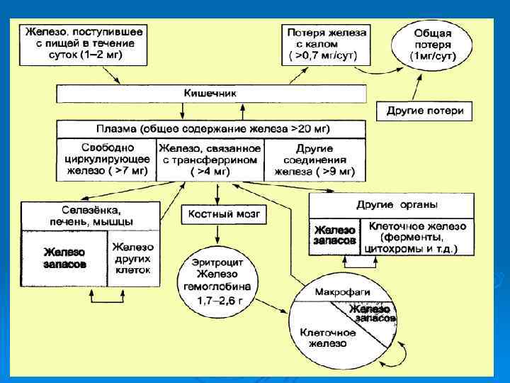 ЖЕЛЕЗОДЕФИЦИТНАЯ АНЕМИЯ • Причина: Потери железа более 2 мг в сутки • Патогенез: Дефицит железа – торможение образования гемоглобина – анемия • Основные принципы профилактики и лечения: Ликвидация причины, вызвавшей дефицит железа. Диета с высоким содержанием железа (мясо, печень и др. ). Длительный прием препаратов железа (4 6 мес. ). Парентеральные препараты железа (по показаниям). Переливания эритроцитарной массы при тяжелой анемии. Профилактический прием препаратов железа в группах риска.