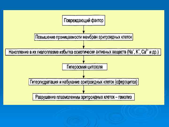 Гемолиз вследствие механического повреждения наблюдается в трех случаях - когда они преодолевают градиент давления, проходя через протезированные и деформированные клапаны сердца, и на их мембрану действует значительная сила сдвига (гемолитическая анемия при протезировании сосудов и клапанов сердца ; - когда эритроциты, проходя по мелким сосудам над костным выступами, подвергаются сдавлению извне ( маршевая гемоглобинурия ); - когда они проходят по мелким сосудам, на стенках которых отложен фибрин (микроангиопатическая гемолитическая анемия ).