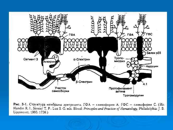Наследственный овалоцитоз Овальными эритроциты становятся потому, что не восстанавливают свою первоначальную форму двояковогнутого диска после прохождения по микроциркуляторному руслу. У больных обнаружена недостаточность спектрина, белка полосы 4. 1 , связывающего спектрин и актин. В Юго-Восточной Азии широко распространен наследственный овалоцитоз, обусловленный делецией гена белка полосы 3. Этот дефект делает мембрану эритроцита ригидной и защищает эритроциты от внедрения малярийных плазмодиев.