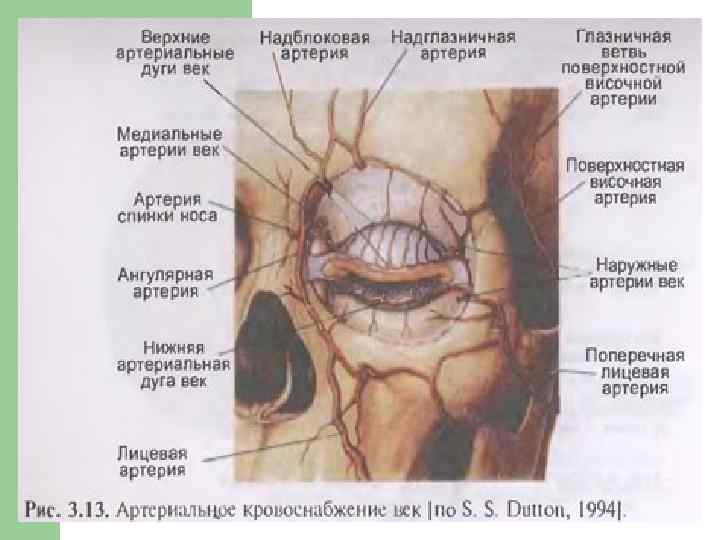 l Эти сосуды анастомозируют между собой и образуют между свободным краем век и хрящеподобной пластинкой артериальные тарзальные дуги (arcus tarsalis internus superior et inferior). l От этих сосудистых дуг отходят веточки артерий к конъюнктиве век. l Отток крови происходит по одноименным венам и далее в вены лица и глазницы.