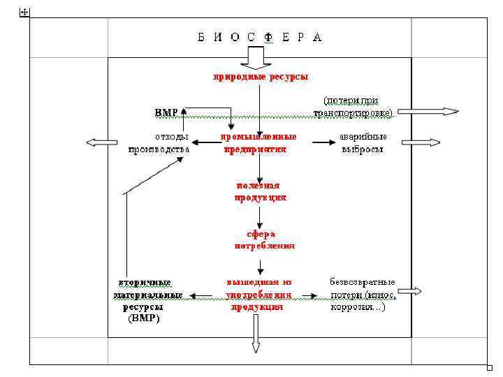 • Совокупность процессов добычи, транспортировки, переработки определенных видов природных ресурсов в полезную продукцию представляет собой ресурсный цикл (антропогенный круговорот вещества). • Техносферный круговорот веществ существенно разомкнут и в количественном, и в качественном отношении. • Степень замкнутости круговорота менее 10%