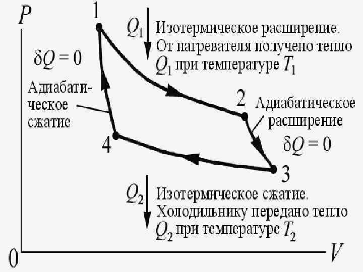 Цикл, изученный Карно, является самым экономичным и представляет собой круговой процесс, состоящий из двух изотерм и двух адиабат