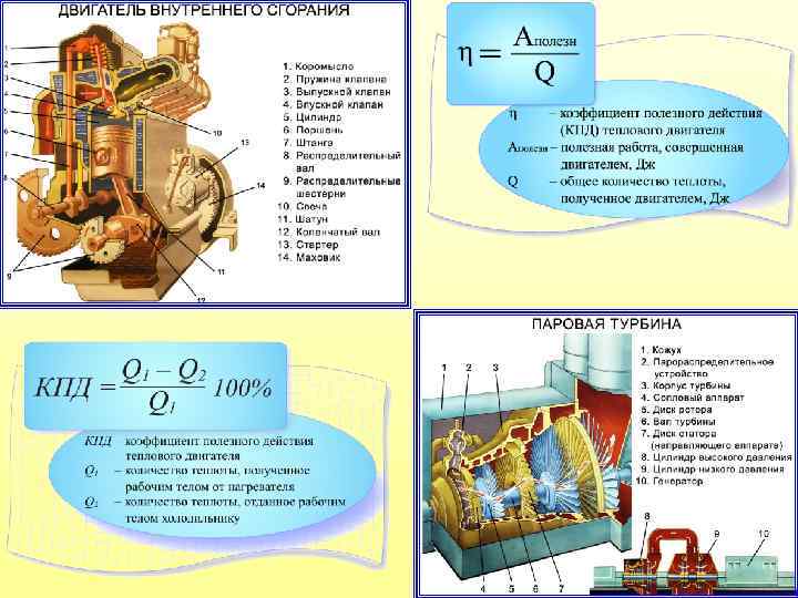 Обязательными частями тепловой машины являются нагреватель (источник энергии), холодильник, рабочее тело (газ, пар). Прямой цикл используется в тепловом двигателе – периодически действующей тепловой машине, совершающей работу за счет полученной извне теплоты.