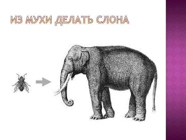 Эта крылатая фраза пришла к нам из Греции. Она была введена в оборот писателем Лукианом, жившим два тысячелетия назад, в его сатирическом произведении «Похвала мухе» . Но все же Лукиан не был настоящим автором выражения. Лукиан лишь использовал уже существовавшую пословицу, авторство которой до сих пор остается загадкой. «Я прерываю слово, хотя многое мог бы еще сказать, чтобы кто-нибудь не подумал, что я, по пословице, из мухи делаю слона» , — пишет Лукиан в конце своей «Похвалы мухе» . Выражение делать из мухи слона – значит раздувать и преувеличивать нечто незначительное до огромных размеров.