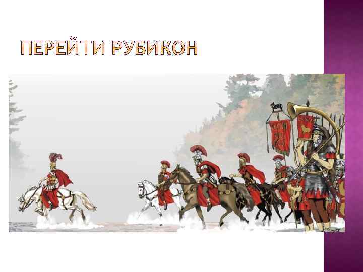 Выражение возникло из рассказов Плутарха, Светония и других древних писателей о переходе в 49 году до н. э. римского полководца Юлия Цезаря через Рубикон — реку, служившую границей. Выражение, означающее готовность к решительным действиям, сделать бесповоротный шаг, совершить решительный поступок, пройти «точку невозврата» .