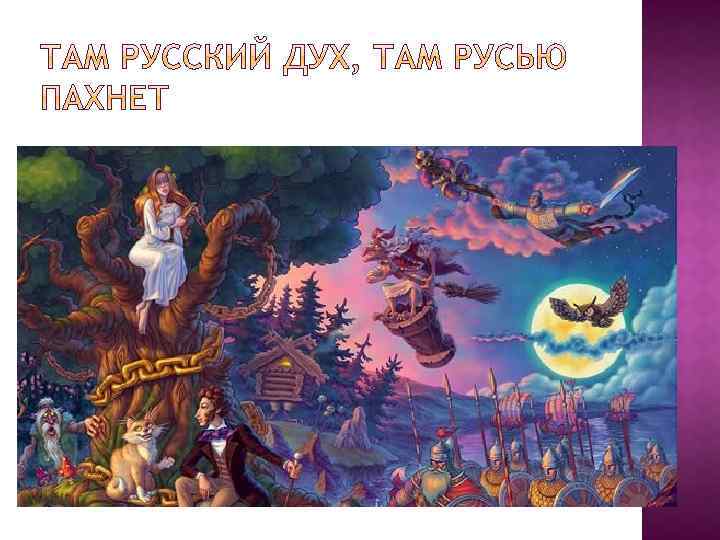 Цитата из пролога к поэме А. С. Пушкина «Руслан и Людмила» ( «У лукоморья дуб зелёный…» , 1828). Понятие русский человек было не обозначением национальной принадлежности, а обозначением принадлежности духовной, обозначением людей, принадлежащих правому духовному полю, полю правды, права, справедливости, праведности. Русский дух (народн. ) То, что составляет русский народный характер, духовную суть русской нации