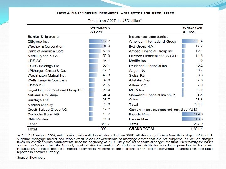 Faza trzecia: kryzys zaufania 15 września 2008 r. upadłość ogłasza Lehman Brothers Holdings Inc. 16 września 2008 r. rząd USA udziela wsparcia finansowego towarzystwu ubezpieczeniowemu AIG 25 września 2008 r. państwo przejmuje kontrolę nad Washington Mutual, największym amerykańskim bankiem oszczędnościowo-pożyczkowym, z sumą bilansową wynoszącą blisko 300 mld USD, 29 września 2008 r. dochodzi do nacjonalizacji brytyjskiego banku hipotecznego Bradford&Bingley; Wells Fargo & Company przejmuje kontrolę nad bankiem Wachovia, zostaje dokapitalizowany bank Fortis 30 września 2008 r. wsparcie ze strony państwa uzyskuje koncern Dexia 1 października 2008 r. rząd irlandzki gwarantuje długi 6 dużych banków gwałtowna spekulacja na rynku akcji straty poniesione przez inwestorów na globalnym rynku akcji w październiku 2008 r. wyniosły 9, 5 bln USD