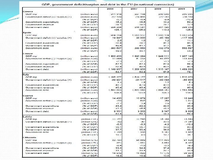 Grecja – brutalne zderzenie z rzeczywistością: w 2009 r. rząd premiera Papandreau ogłosił publicznie, że deficyt budżetowy będzie dużo większy niż przyjęte wcześniej 6% PKB i sięgnie 12, 7% PKB (w istocie był jeszcze wyższy, osiągając poziom 15, 4% PKB) to oświadczenie miało doniosłe negatywne konsekwencje: gwałtownie wzrosła rentowność greckich obligacji skarbowych (spread między rentownością tzw. bundów i obligacji greckich sięgnął nawet 850 pbs) na początku 2010 r. gospodarstwa domowe i przedsiębiorstwa wycofały z banków greckich 8 mld euro w kwietniu 2010 r. agencja ratingowa Standard & Poor ‘s obniżyła rating Grecji do pierwszego poziomu „nieinwestycyjnego” BB w kwietniu 2010 r. banki greckie – w obliczu kłopotów z płynnością – zaapelowały do rządu o pomoc na kwotę 17 mld euro w kwietniu i maju 2010 r. trzeba było „rolować” dług na sumę przekraczającą 20 mld euro