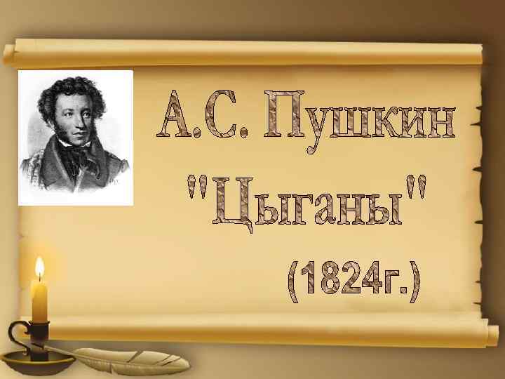 Кто в силах удержать любовь? А. С. Пушкин А. Пушкин начал работу над «Цыганами» в январе 1824 г. В Одессе. Он набросал план поэмы и 30 стихов –черновиков к ней. Кончил поэму уже а Михайловском, в ссылке. Но сюжет связан не с Одессой и не с Михайловским, а с Кишинёвым.