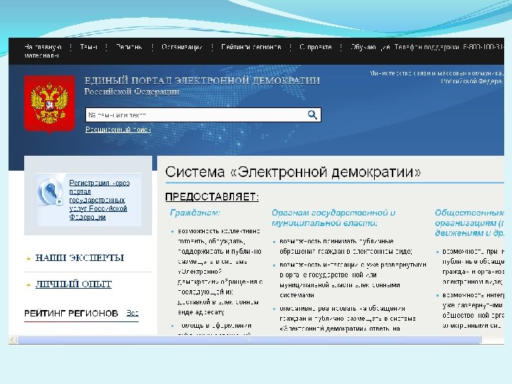 e-democracy Использование информационных технологий для расширения возможностей каждого гражданина e-government Повышение оперативности и удобства доступа к услугам государства из любого места и в любое время